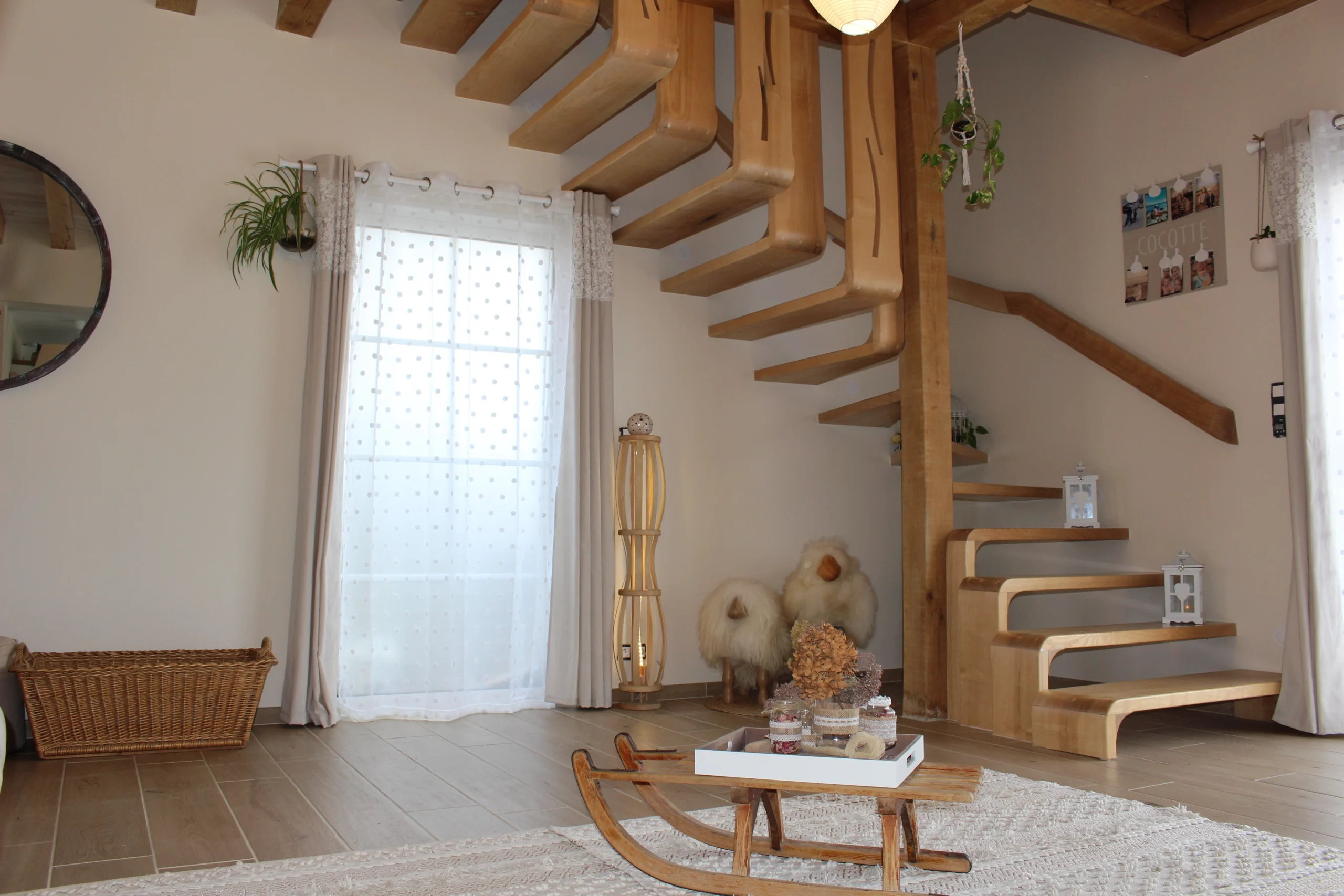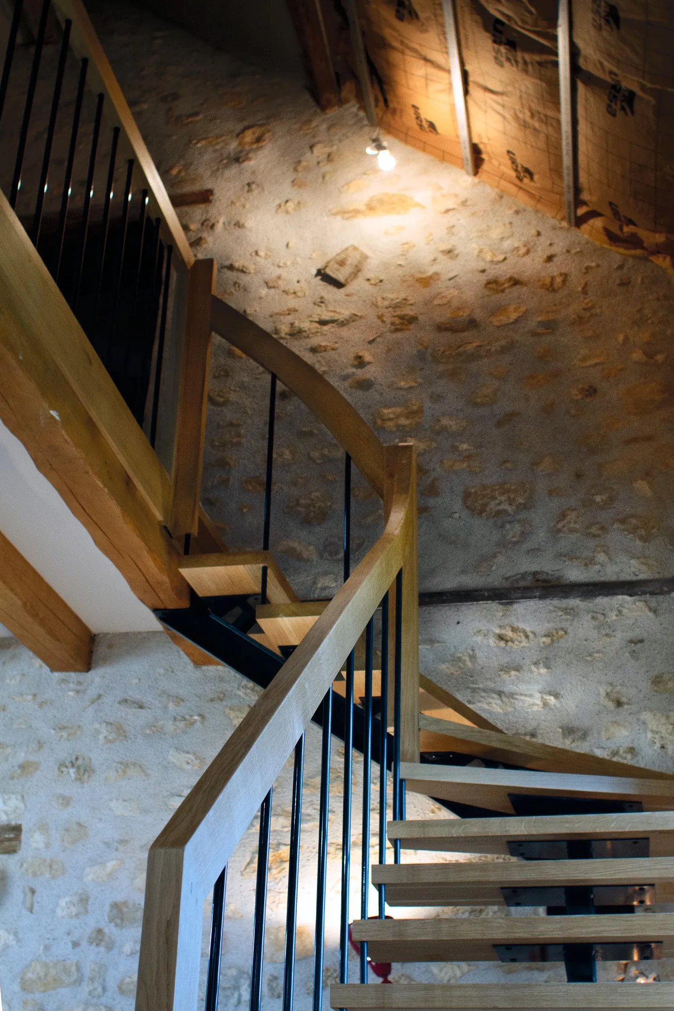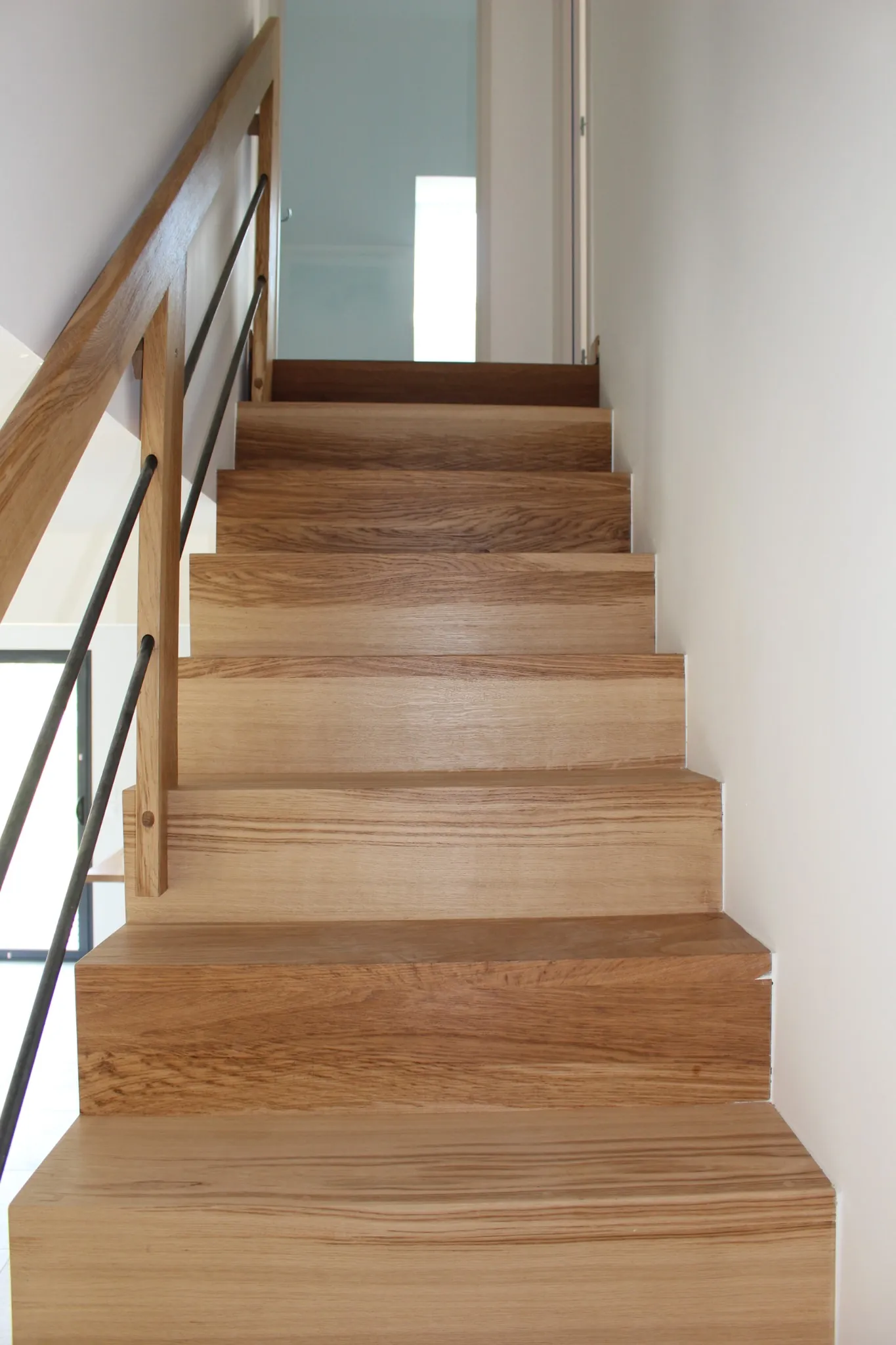 Je monte l’escalier sur site, j’assure les ancrages, les ajustements au millimètre, puis j’applique patines, huiles ou vernis résistants.