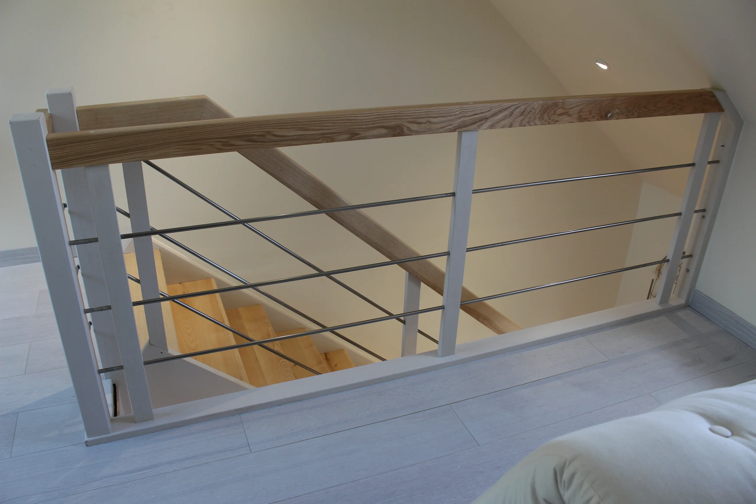 Droit, quart-tournant, hélicoïdal ou limon central, je conçois votre escalier bois et métal pour durer et s’intégrer parfaitement à votre intérieur. J’associe les essences (chêne, frêne, hêtre…) à l’acier (limons, crémaillères, garde-corps) pour un rendu solide et élégant. J’étudie la trémie, le confort de marche (giron/hauteur), les normes de sécurité et les finitions avant la fabrication en bois sur-mesure.